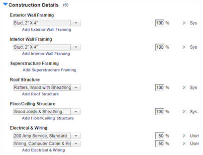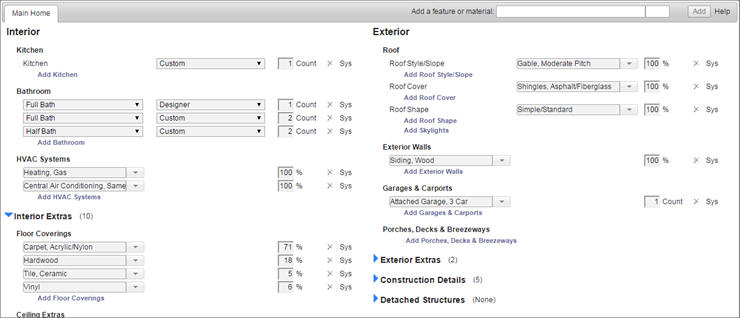 Note: When using Advanced Entry there are no defaulted materials. All materials must be added manually for the home being valued.
