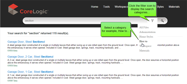 Once you select the category the system will search again but only for those topics within the category. So if you entered the word "section" and selected the category "how to" the search would be narrowed and only 8 results would be returned, making it much easier to find the topic you're looking for.